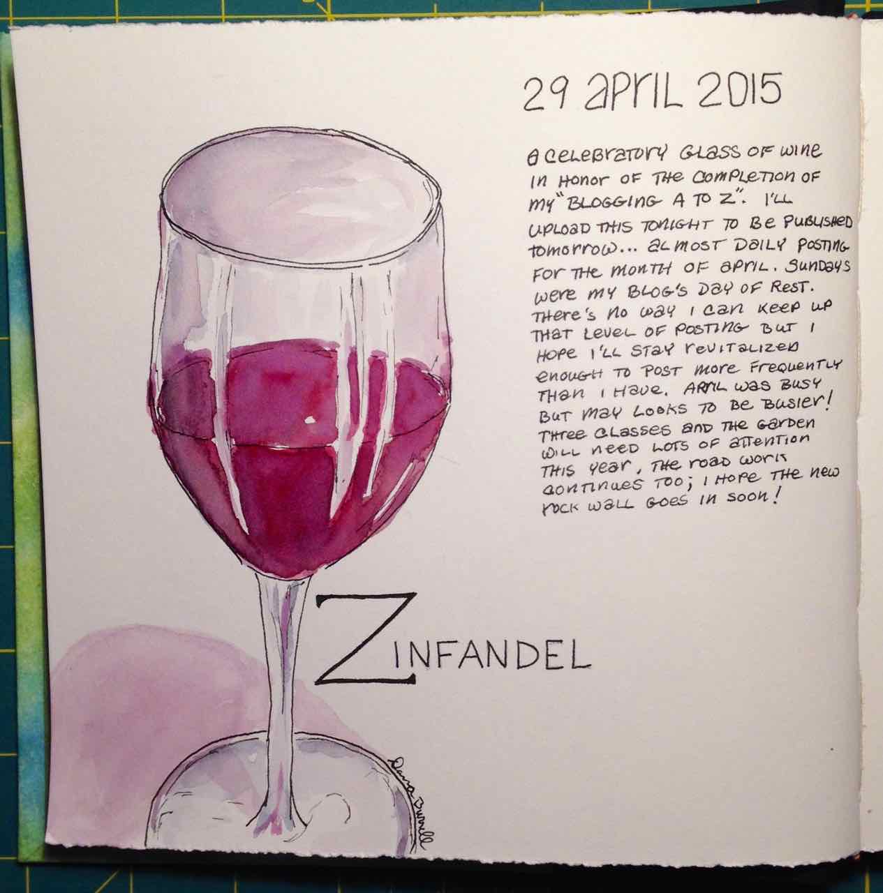 Z is for Zinfandel (Blogging A to Z) Posted on April 30, 2015 by Dana Burrell I did it… I blogged A to Z for the entire month of April! No cabernet or merlot for me tonight… zinfandel all the way! Share this: Click to share on X (Opens in new window) X Click to share on Facebook (Opens in new window) Facebook Like Loading... Related