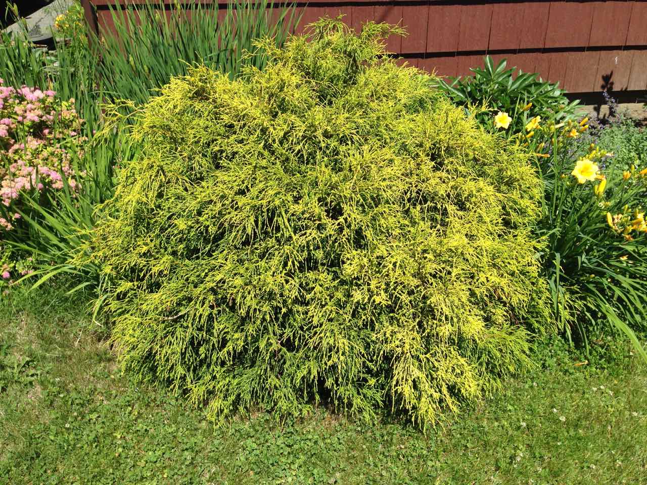 Color in the garden doesn’t always come from blossoms. Take this ab-so-lutely fabulous shrub… it’s a cypress. Chamaecyparis pisifera ‘Sungold’.