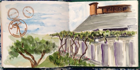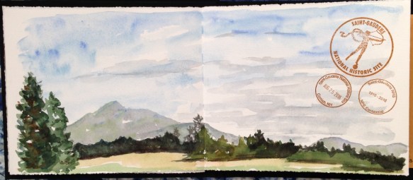 I decided to visit Saint-Gaudens National Historic Site for my celebration. There were dreams of cake and candles, but instead I was treated to a beautiful breezy and not too hot summer day, just perfect for painting.  I arrived at 9 am and promptly settled in on my favorite marble bench to capture the view of Mount Ascutney.