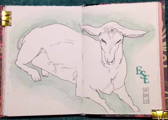 I did this goat sketch in 2013 and thought I’d easily be able to link to other sketches done the same day, that was before I realized they pre-date this blog by a few months! By the way, ESE stands for Eastern States Exposition, also known as The Big E!