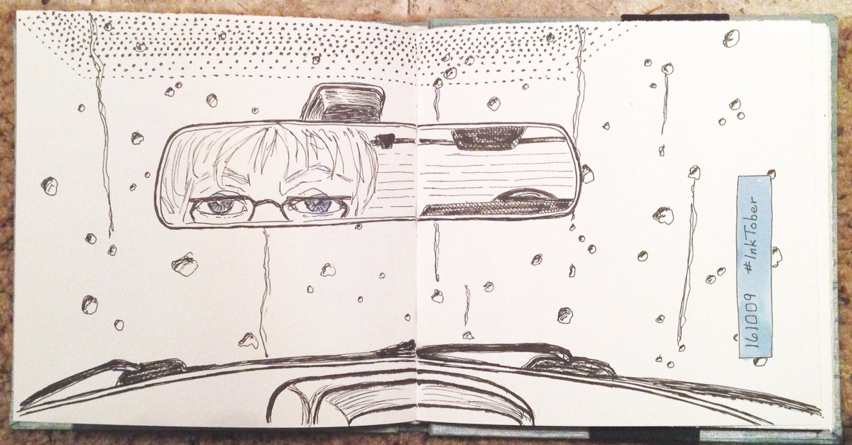 I did, I did! I was out camping with the family and wasn’t expecting the rain from Hurricane Matthew to reach us. I was chilled and damp so I sat in the car with the heat on for a few minutes while I sketched. Believe me, warming up improved my mood immensely!