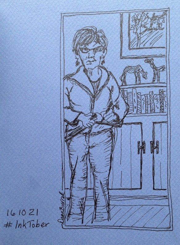 21 October 2016 – #inktober Posted on October 21, 2016 by Dana Burrell Looks like I’m getting a big head from all these selfies. Sketched on Canson Mi-Teintes paper… (Icy Blue). #inktober #inktober2016 Share this: Click to share on X (Opens in new window) X Click to share on Facebook (Opens in new window) Facebook Like Loading... Related
