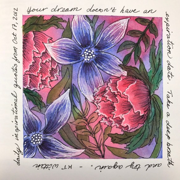 Lovely opaque white ink. Here I’ve layered it over many layers of watercolor.