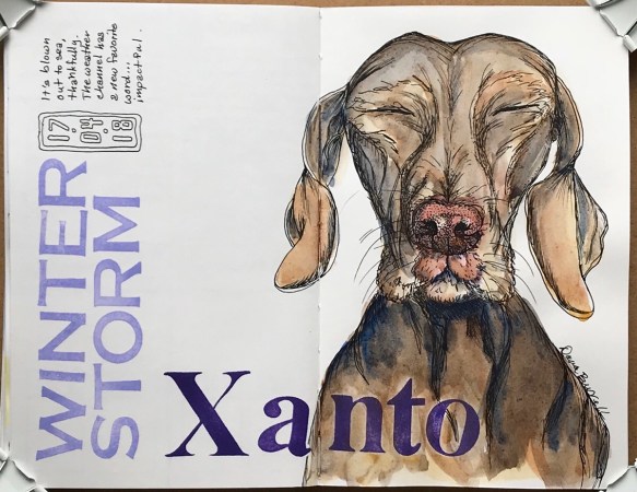 I know I’ve snickered at the Weather Channel’s recent habit of naming our winter storms but that hasn’t stopped me from documenting them in my sketchbook.