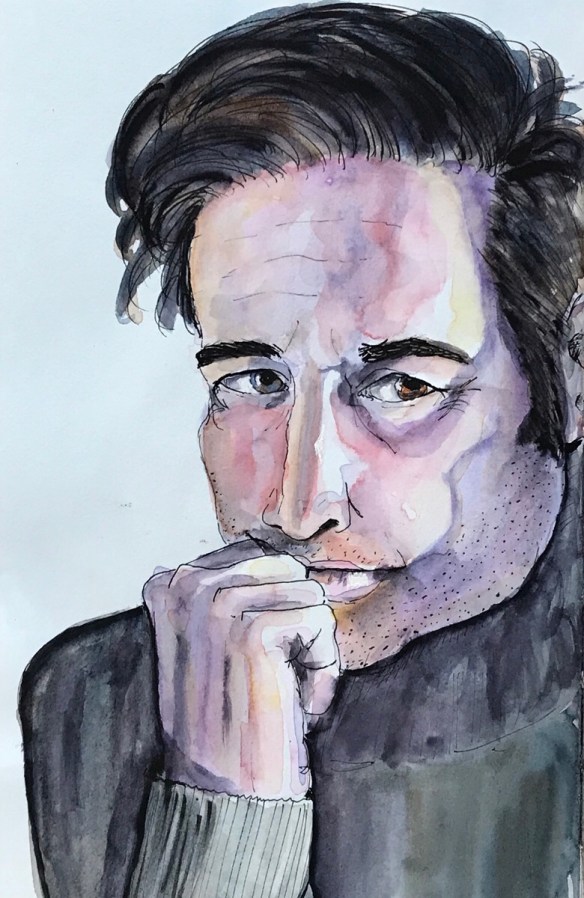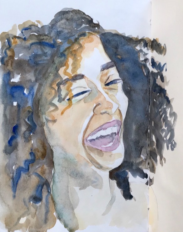 I guess I’ll start in by showing you a few of my favorite portraits from May and one from early June. All were drawn from photographic references posted on the Sktchy app by other creatives. You’ll see I often switch things up by sometimes forgoing my beloved ink lines and instead choose to sketch in pencil before I paint. There’s a different feel to each of these methods but I enjoy them both.