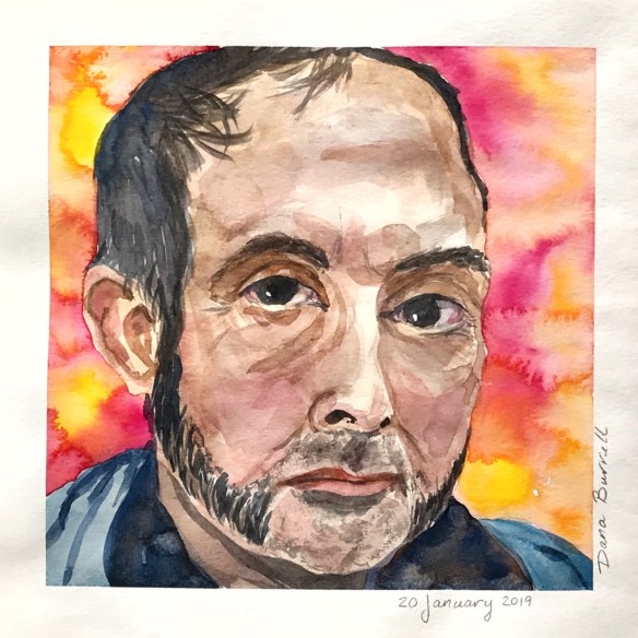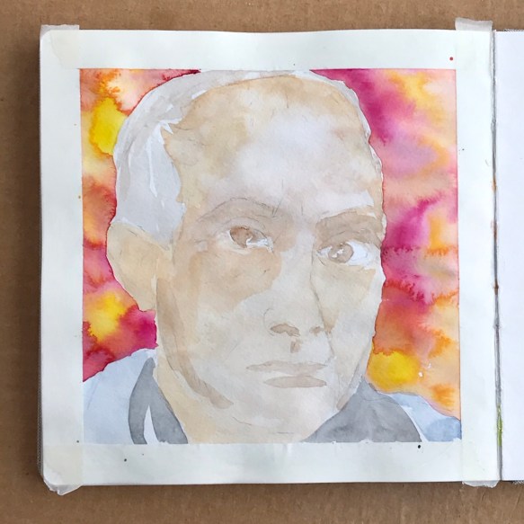 More layers to suggest his laugh lines and it’s time to stop before I start fiddling. I peeled off the artist’s masking tape… signed it… dated it… and done.