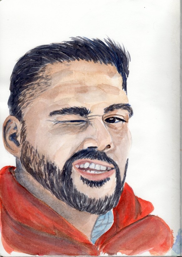 Although I lost the tilt of his head in comparison to the inspiration photo I could live with that. Instead I focused on how washed out my watercolors looked. Now that was something I could change.