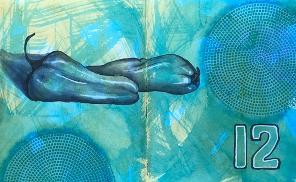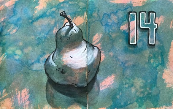 A friend in a mutual Facebook group put out the challenge to sketch daily… “organic shapes from observation”… and Daily Potato was born. It was October, it was time for Inktober, and it was destiny… I chose to do a mashup of Inktober, #dailypotato, and finally filling the Strathmore 500 Mixed Media Journal with pre-painted spreads I created in Roz Stendahl’s online class “Textures”.