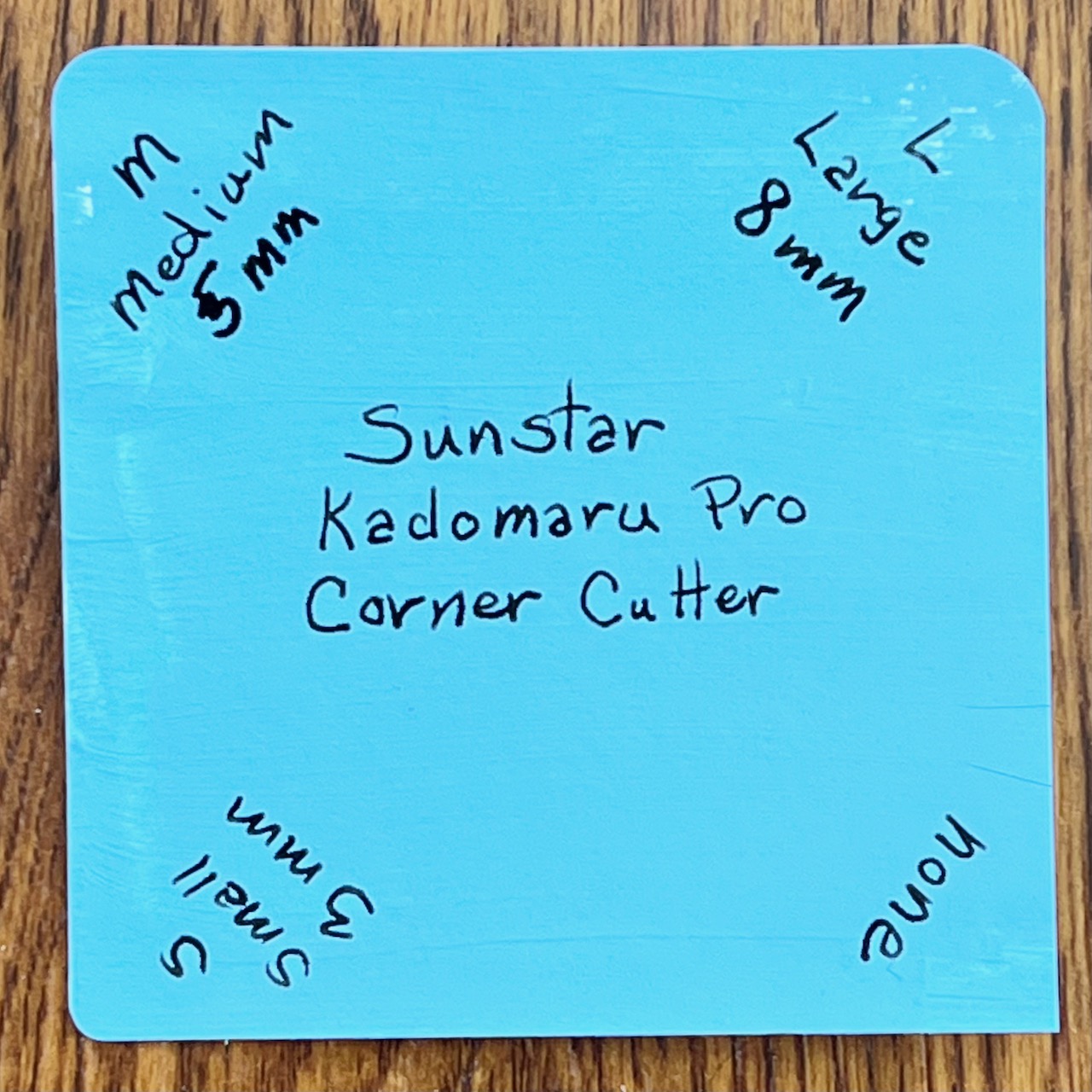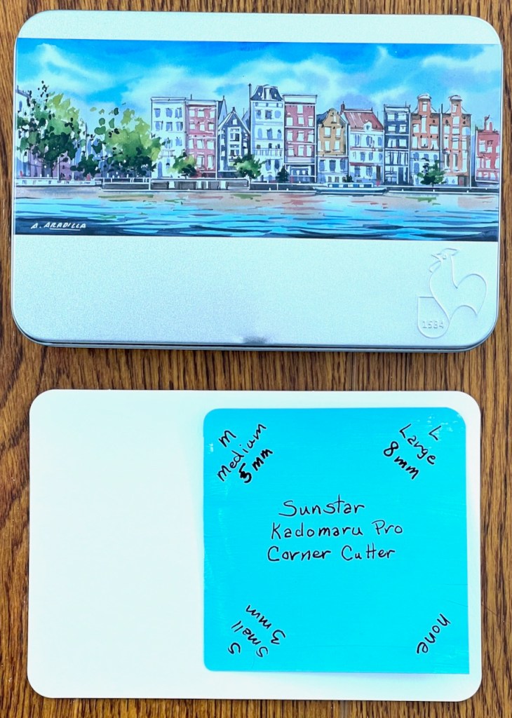 This little beauty can be used to round three different sizes depending on what’s needed. There’s a 3mm, a 5mm, and an 8mm. Does it measure radius? I think so but I’m not sure. I cut a sample card.