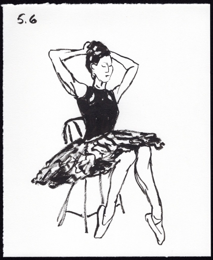 Back in April I signed up for a drawing session organized by Gayle Kayaker and Jennifer Orkin Lewis. We drew from a live model on Zoom, a costumed ballet dancer, Leigh Kidwell.
