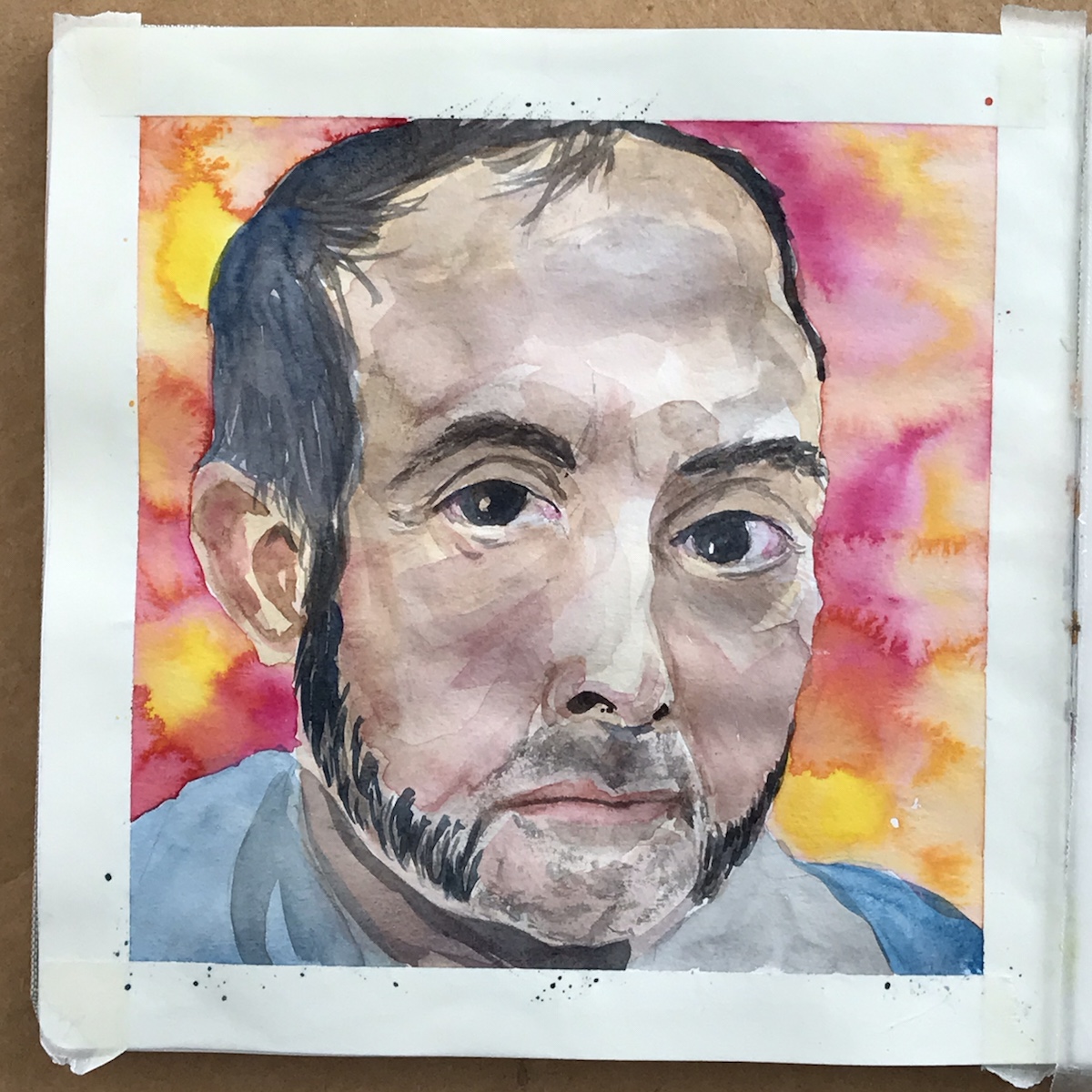 More layers to suggest his laugh lines and it’s time to stop before I start fiddling. I peeled off the artist’s masking tape… signed it… dated it… and done.