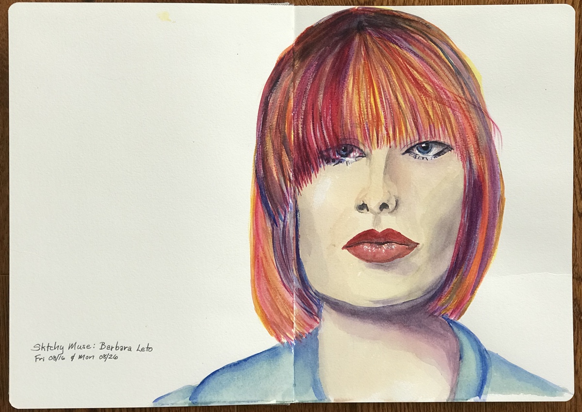 Pencil and Watercolor in an 8 in. square HandBook Watercolor Journal. Portrait of a muse from Sktchy.