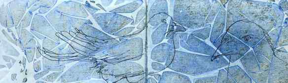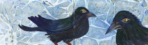 I make references to this blog… Skylark Karma… when I lead up to April but ’till now I’ve never had a sidebar widget of my own. When you’re on the home page you can see the image of a crow on the right; it’s done in gouache and marked up with my blog address. Just a simple click of the image and you’ll be whisked off to browse my current and former fake journals.