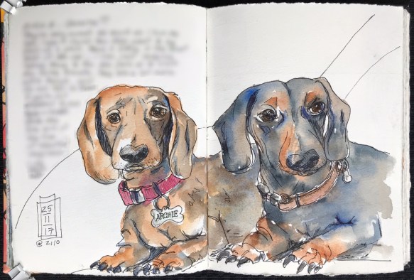 Both the Jinhao’s are quite heavy (twice as heavy?) but even with my small hands I’ve enjoyed using them for drawing. Both come with medium nibs installed and I’ve found they’re really smooth… haven’t had one skip since I’ve inked them up… De Atramentis Document Black is waterproof and the pens have handled it well. If you find you’d like a finer or broader nib it’s possible to exchange the nibs and put in a Goulet Nib. Both are #6 and from what I can see are easily exchangeable. As you can see, the #6 nib is larger than the nib on the Pilot Metropolitan. I’m going to play with these a while before I decide.