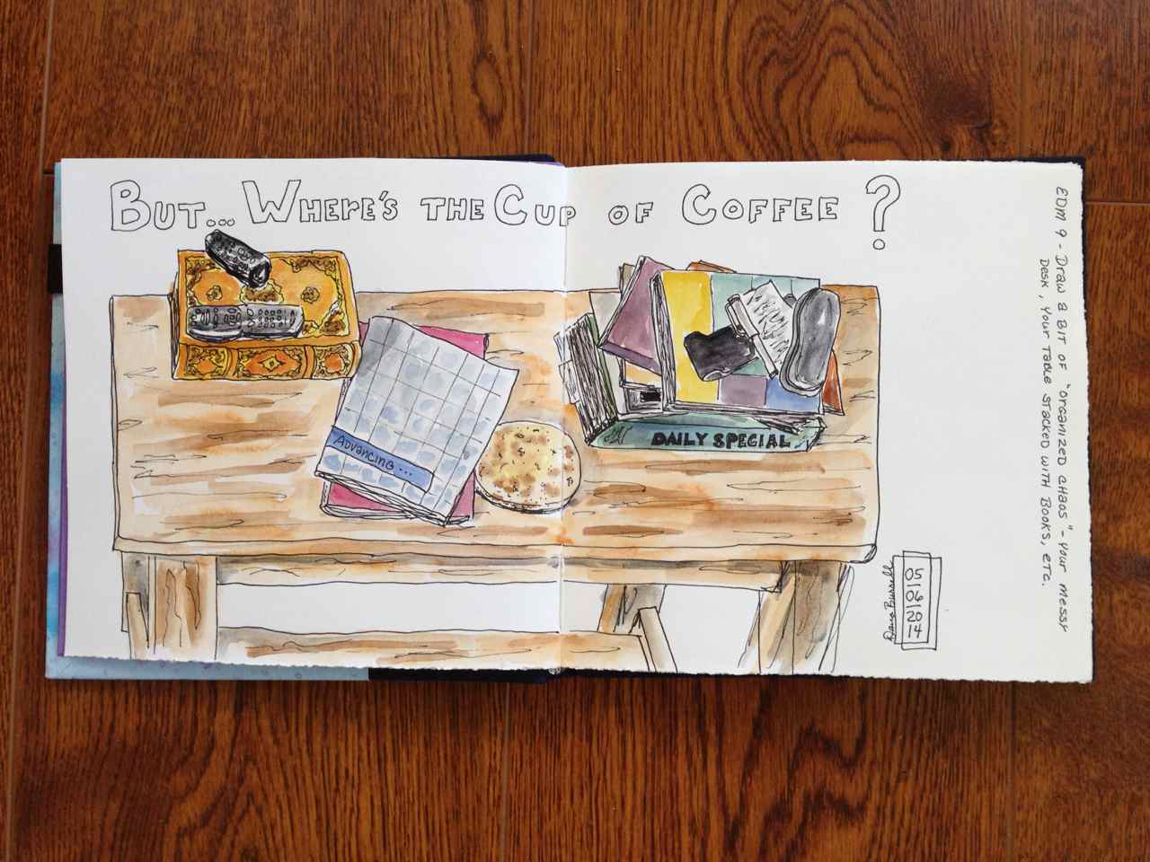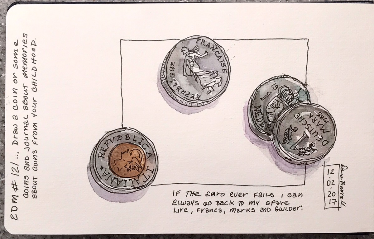 Way back in 2012 I heard about a group committed to sketching every day in the month of May. I did some searching and found Wendy/Quirkyartist and Liz Steel/Borromini Bear planned to do what has been called EDiM… Every Day in May. They spread the word to use the Everyday Matters Challenge list starting with #100 and go in reverse order for the month.