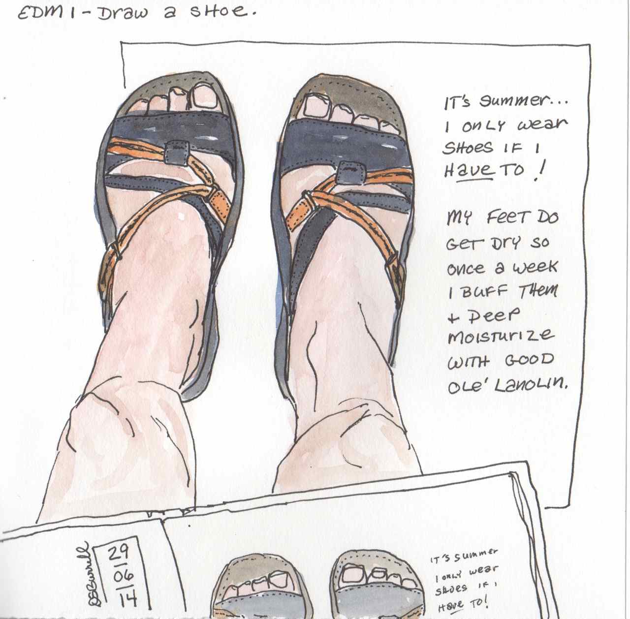 Sheesh! I was working fairly regularly on the list when I hit #22 – Draw a piece of clothing. I don;t know what it was but the list just kept getting transferred from sketchbook to sketchbook and that piece of clothing never got it’s day. I did plenty of other sketching… I even drew my clothes as I packed for my vacation. But I didn’t label it as EDM 22.