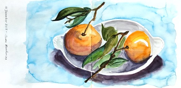 (All pages: Sailor Fude pen with water-soluble black ink and assorted colors (including white) FW Acrylic Ink in a Strathmore 500 Mixed Media Journal with pre-painted page spreads.)