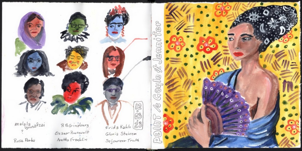 On March 12, 2023, I logged into Zoom for another gouache paint-along with Gayle Kabaker and Jennifer Orkin Lewis. Since March is Women’s History Month Gayle and Jennifer chose Women and Pattern for their theme.