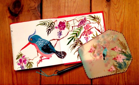 Today was hot enough for me to pull out my mother’s old silk chinese paddle fan. As I cooled myself I admired the hand-painted bird and flowers. Could I do that someday?