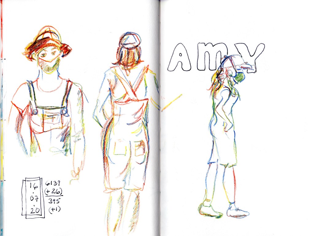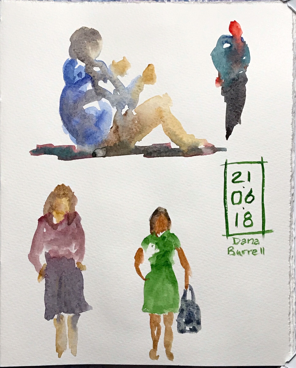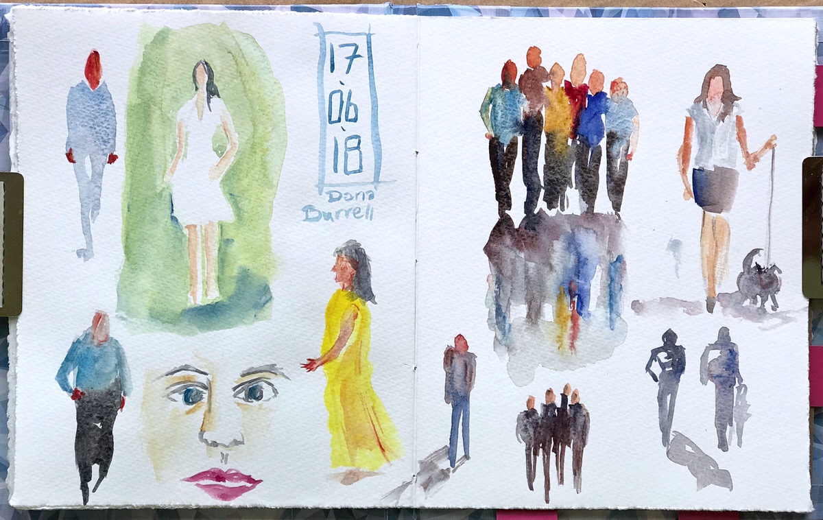 Another people spread. I’m particularly fond of the woman with dog in the upper right. Just a few brush strokes allowing us to fill in the details ourselves.