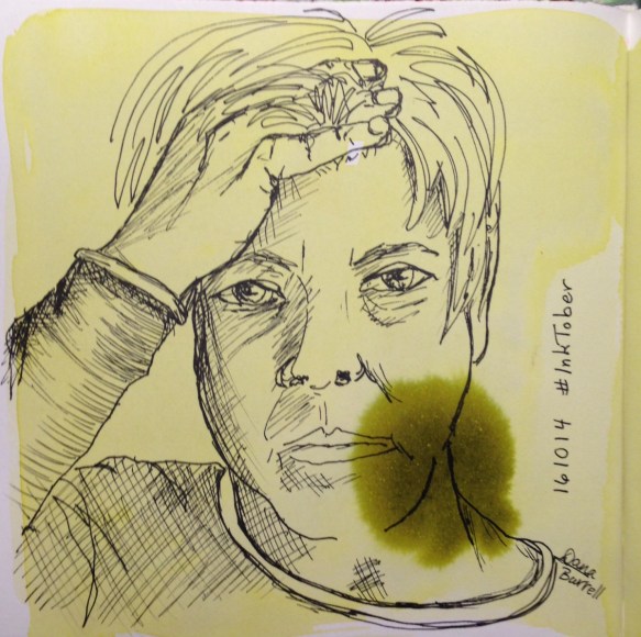 From left to right… Fountain pen with Platinum Carbon Ink, Koh-I-Nor Magic Pencil, Derwent Medium Wash watersoluble pencil, and Caran d’Ache Museum Aquarelle watercolor pencils.