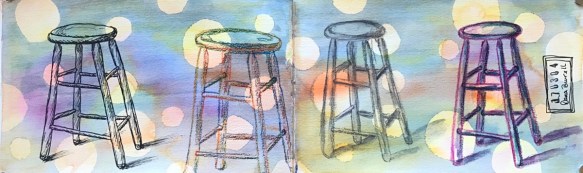 Today’s practice was drawing this stool four times with four different media but each time using the negative space as my guide. The negative space is all the gaps created by the intersections of the legs and rungs.