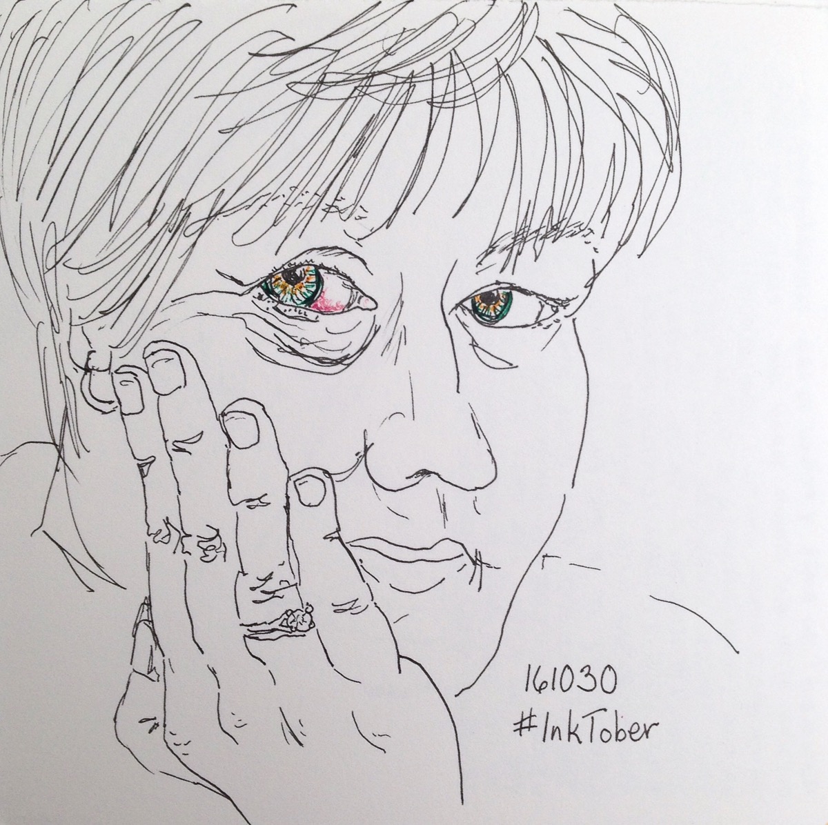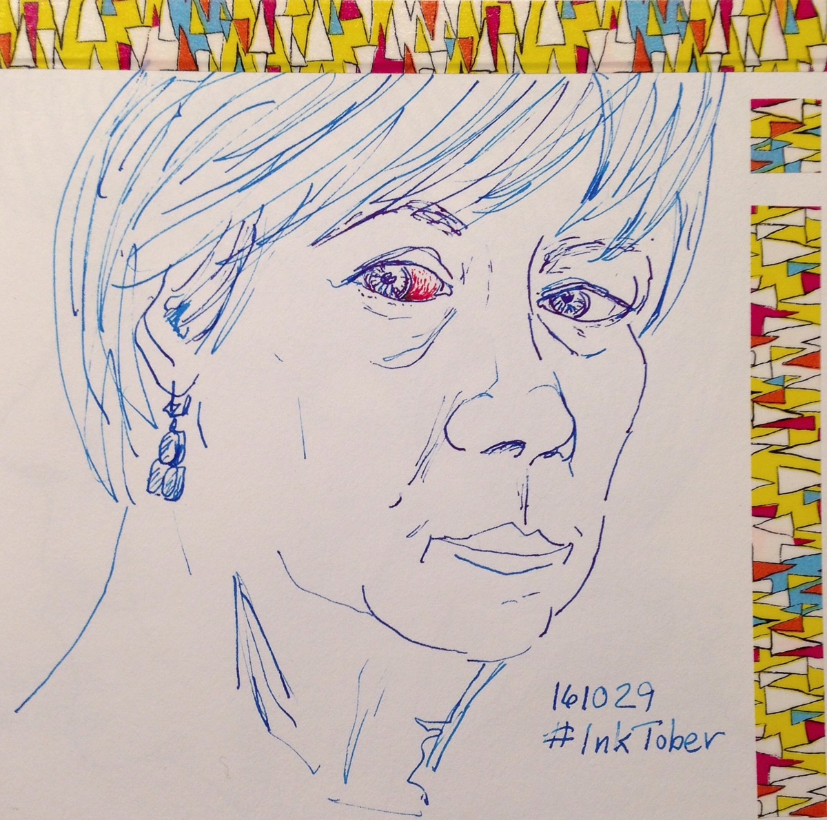 The best part of taking her class has been revisiting my comic arts dip pen fitted with a flexible G nib. I used it with a favorite permanent ink, DeAtramentis Document Brown.