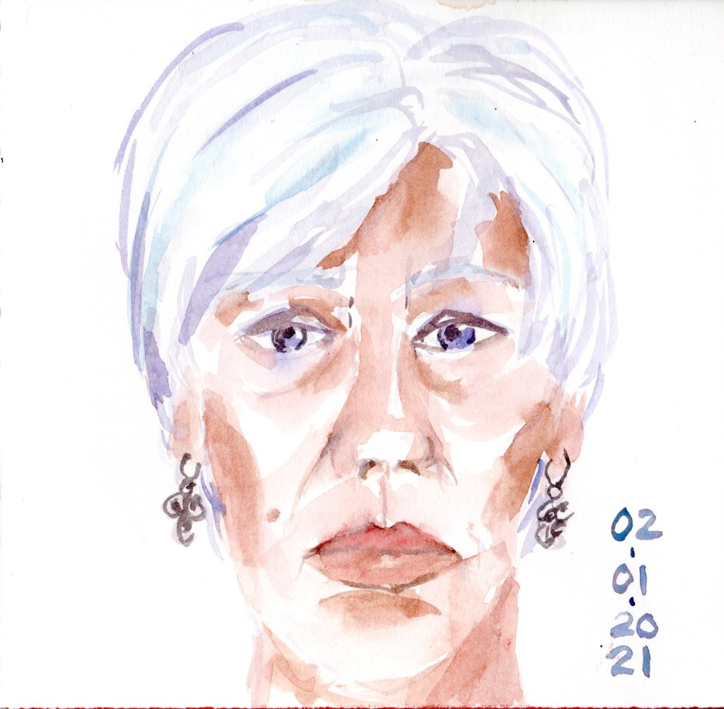 A few more sketches and then, magically, I had reached the last page. I quickly drew a modified contour selfie, added splashy watercolor, and a new favorite quote…