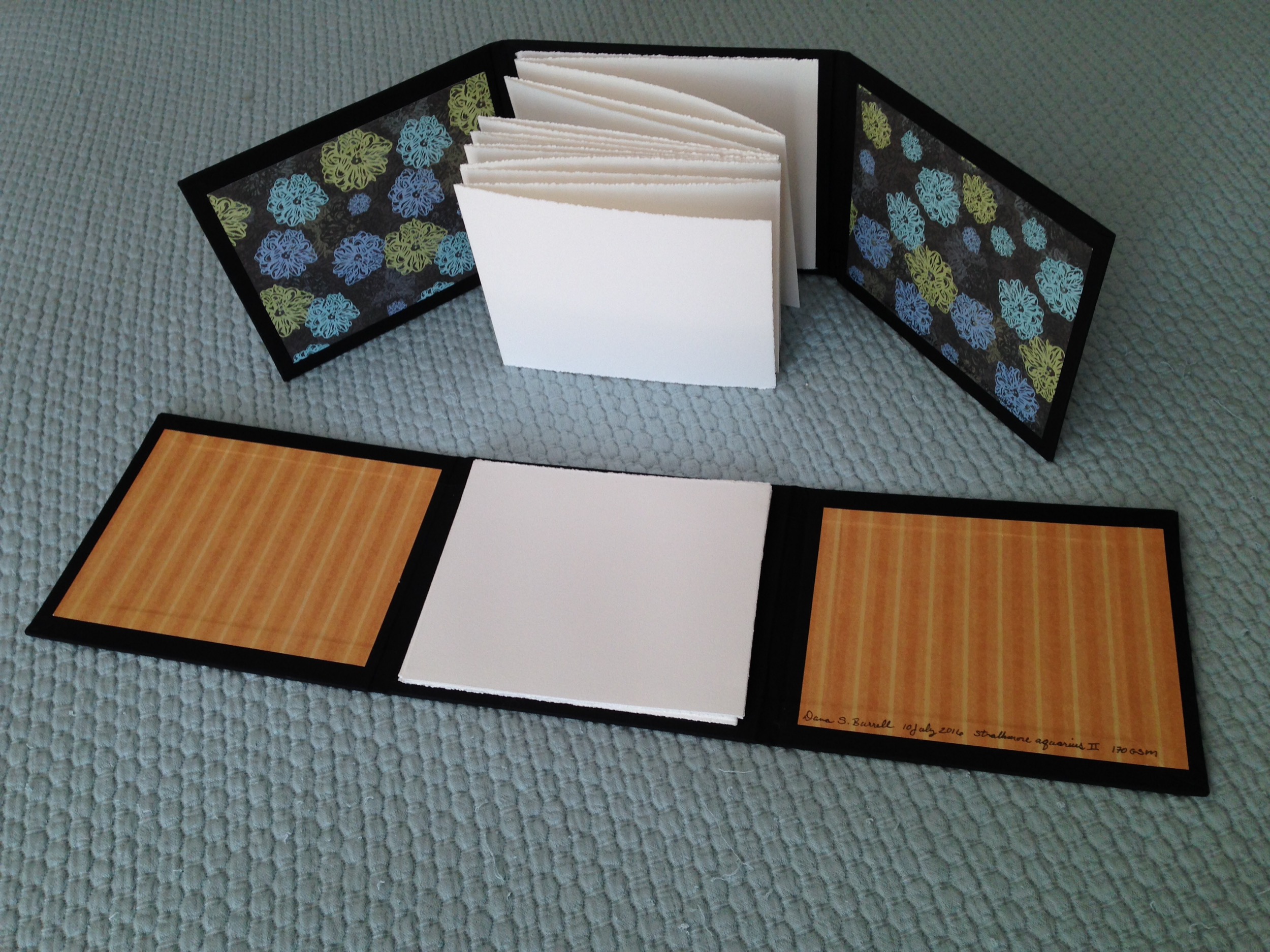 Then a friend turned me on to Ed Mostly’s blog, Mostly Drawing. Not only does he post beautiful artwork but he’s experimenting with book arts. Ed created a concertina book with overlapping covers for drawing support. I urge you to read this post as I could never explain his methodology as clearly as he does.