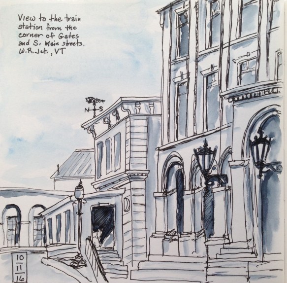 I spent yesterday morning sitting on a curb, in the sun, trying to capture the receding buildings along a Vermont side street. It was immensely healing.